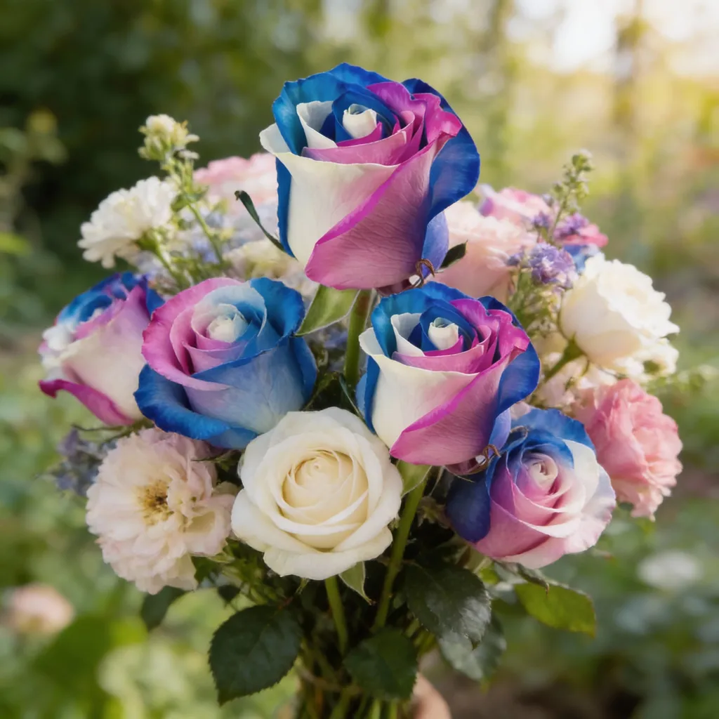 Rosa bicolor o tricolor con una mezcla vibrante de tonos, que combina coloraciones contrastantes y atractivas en cada pétalo, aportando un efecto visual único y dinámico. Se caracteriza por su excelente apertura, buena duración en florero y presencia visual impactante, ideal para arreglos llamativos y exportación de alta calidad.