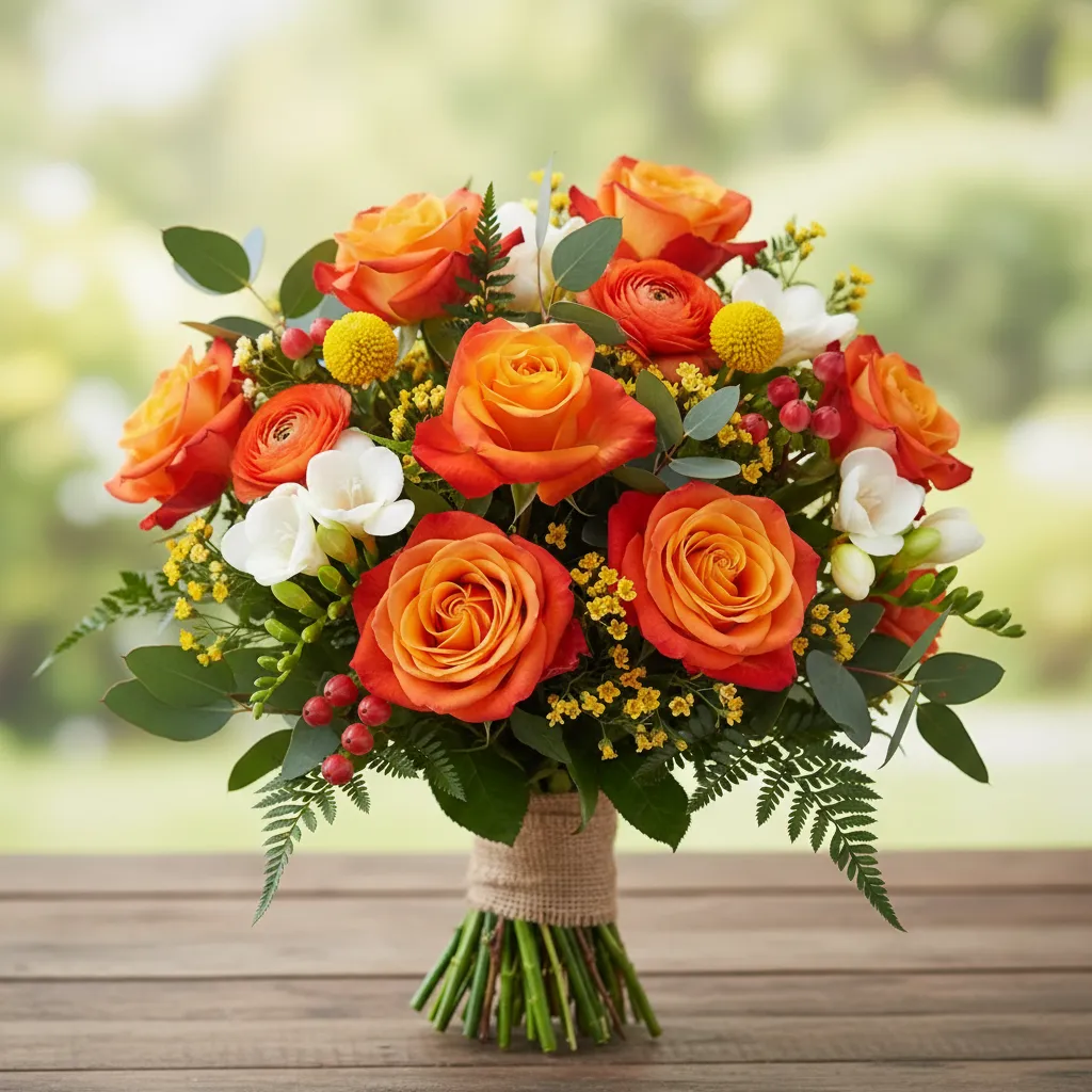 Una rosa con un color naranja cálido y vibrante, ideal para dar un toque de energía y frescura en cualquier arreglo floral. Su tono brillante y su forma elegante la hacen perfecta para ramos alegres y decoraciones llamativas en eventos o detalles especiales.