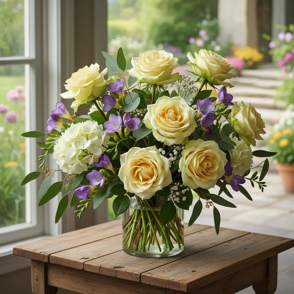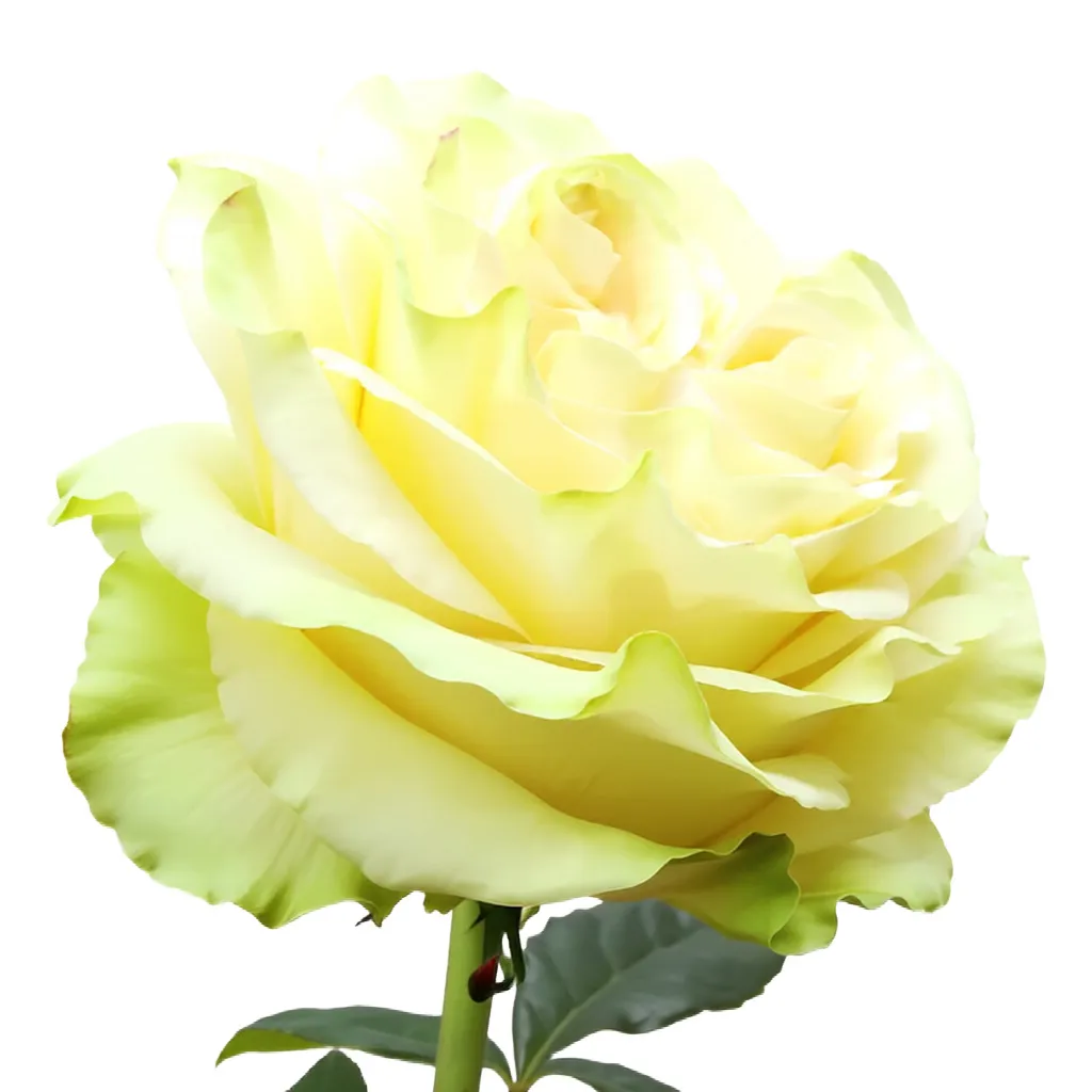 Rosa de color blanco amarillento y luminoso, con pétalos firmes y una apertura elegante. Se caracteriza por su excelente vida en florero, tallos fuertes y gran presencia visual, ideal para arreglos modernos y exportación de alta calidad.