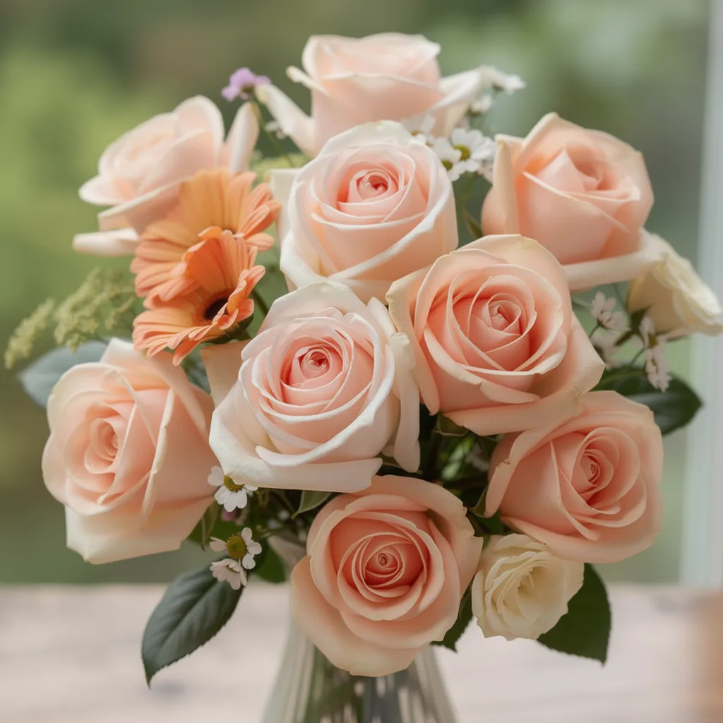 Rosa de tonos suaves entre crema, rosa y durazno claro, con una mezcla delicada y elegante que aporta un toque armonioso a cualquier arreglo floral. Se caracteriza por su excelente apertura, buena duración en florero y presencia visual refinada, ideal para arreglos románticos y exportación de alta calidad.