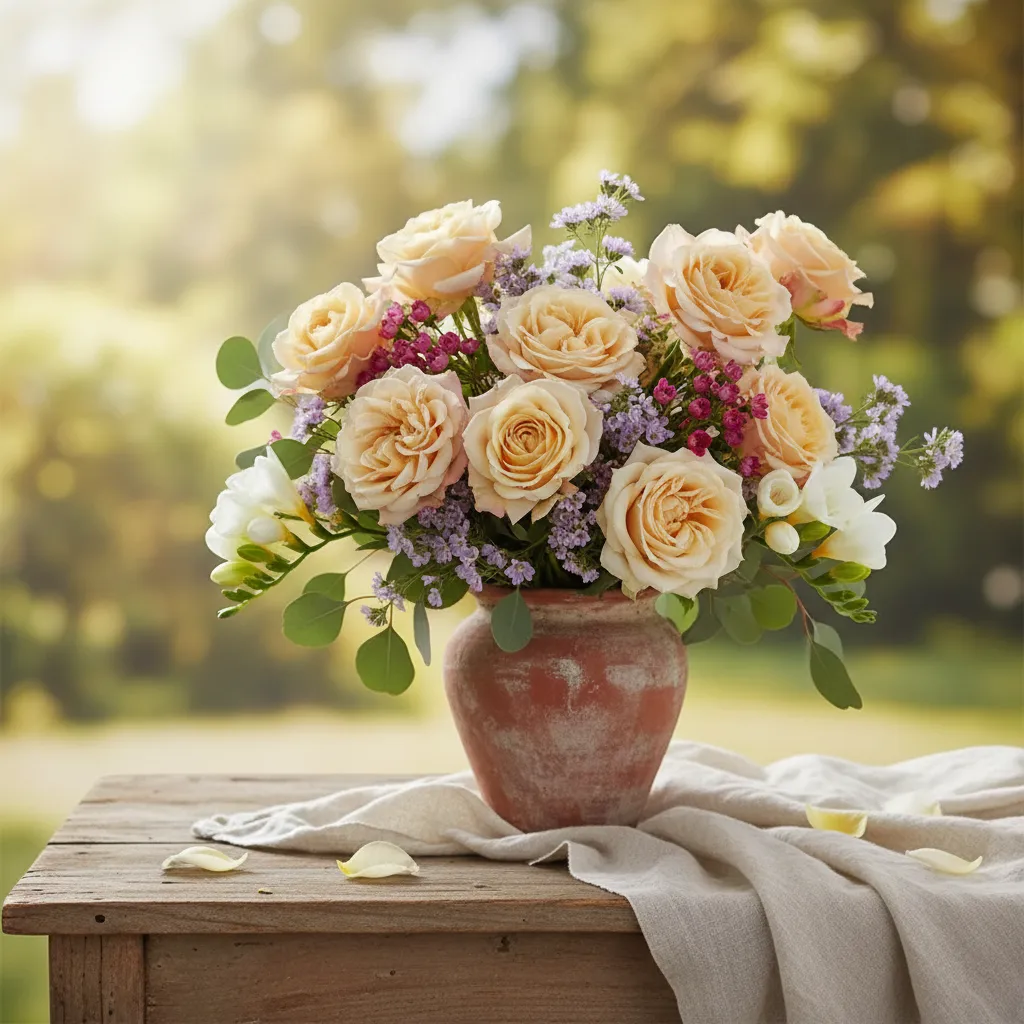 Rosa de tono terroso naranja, con pétalos bien formados que aportan un aire sofisticado y distinguido. Se caracteriza por su excelente apertura, buena duración en florero y presencia visual delicada, ideal para arreglos románticos, eventos especiales y exportación de alta calidad.