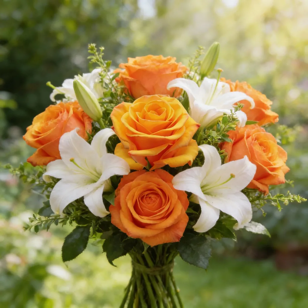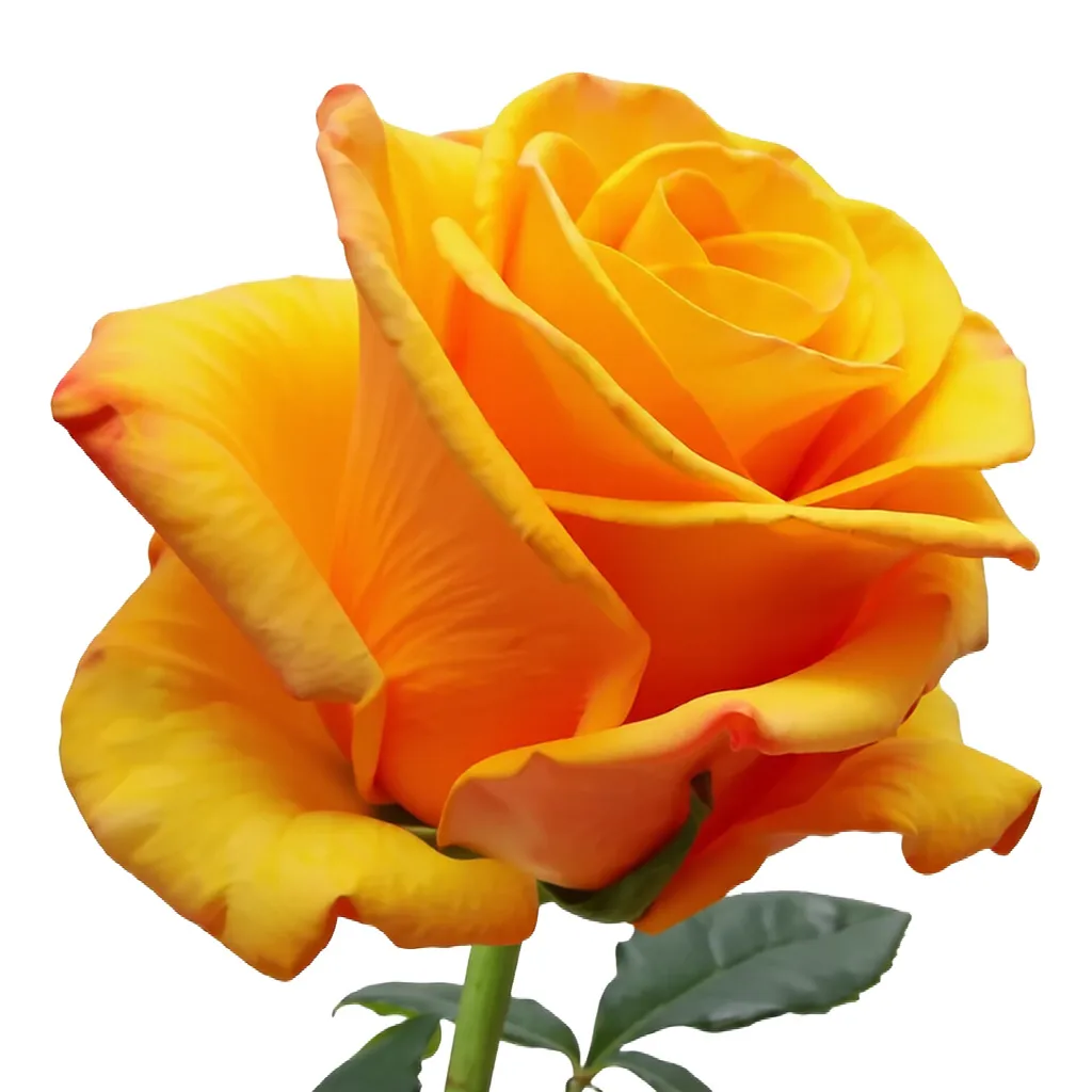 Rosa de color naranja vibrante con un centro amarillo, con botón mediano (6-6.5 cm) y tallo de longitud media. Se caracteriza por su excelente apertura, buena duración en florero de 12 – 14 días y presencia visual destacada, ideal para arreglos modernos y exportación de alta calidad.